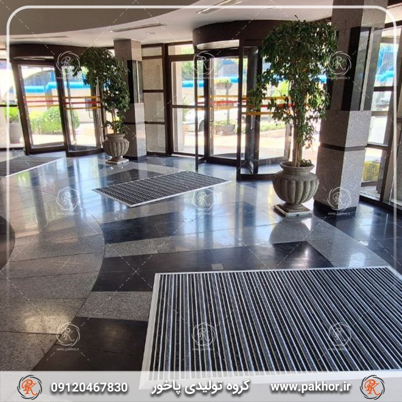 علاوه بر این، طراحی شیارهای عرضی PVC باعث هدایت آب، گل و گردوغبار به درون شیارها می شود و سطح رویی همیشه خشک و ایمن باقی می ماند. در مقابل، موکت ضدکوبش با قدرت جذب گرد و غبار و جلوگیری از لغزش نرم، فضای داخلی را آرام و تمیز نگه می دارد. نصب رمپ فلزی اختیاری نیز از گیر کردن لبه پادری آلومینیومی به پای افراد جلوگیری می کند و عبور چرخ دستی یا چمدان را بدون مشکل امکان پذیر می سازد.